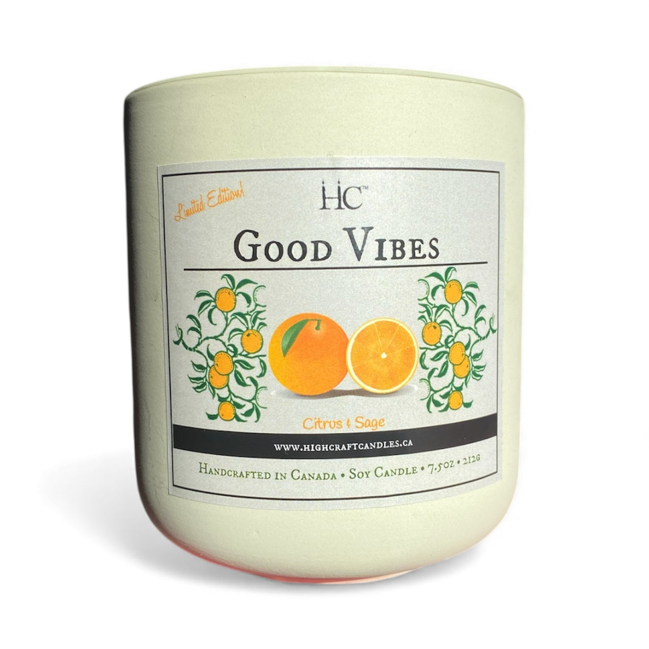 Good Vibes is your personal shield of calm and positivity—hand-poured soy wax blended with bright citrus and grounding sage, it's made with pure intentions and good vibes only. Great for when moving into a new space or need to clear the energy - reset your focus, or just call in a wave of positivity. This scent turns any room into a sanctuary for good intentions and positive vibes.